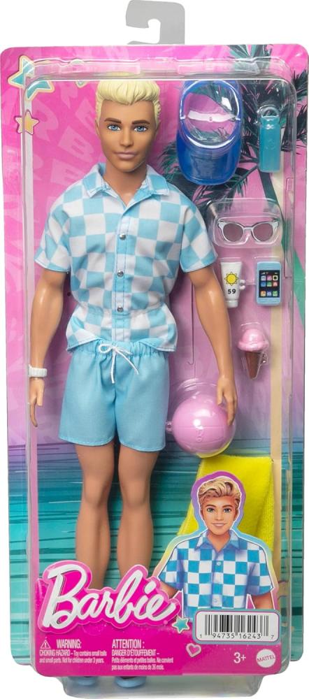 مع أصابع قدميه في الرمال والآيس كريم في يده، تتمتع دمية باربي® كين® الشقراء بكل الضروريات لقضاء يوم هادئ في ماليبو! ترتدي ملابس سباحة زرقاء صيفية وتأتي مع الكثير من إكسسوارات الشاطئ. سيستمتع الأطفال من سن 3 سنوات وما فوق بهذه الدمية الشاطئية كين®! لا يمكن للدمية أن تقف بمفردها. قد تختلف الألوان والزخارف.العمر: 3+الأبعاد: 32 × 15 × 6 (سم)الوزن: 234 جرامWith toes in the sand and ice cream in hand, this blonde Barbie® Ken® doll has all the essentials for a relaxing day in Malibu! He wears a summery blue swim outfit and comes with lots of beachy accessories. Kids ages 3 years old and up will have a ball with this Ken® beach doll! Doll cannot stand alone. Colors and decorations may vary.Age: 3+Dimension: 32 x 15 x 6 (cm)Weight: 234 Grams