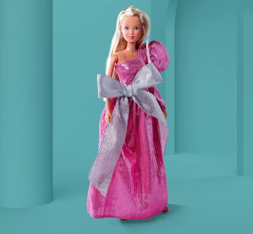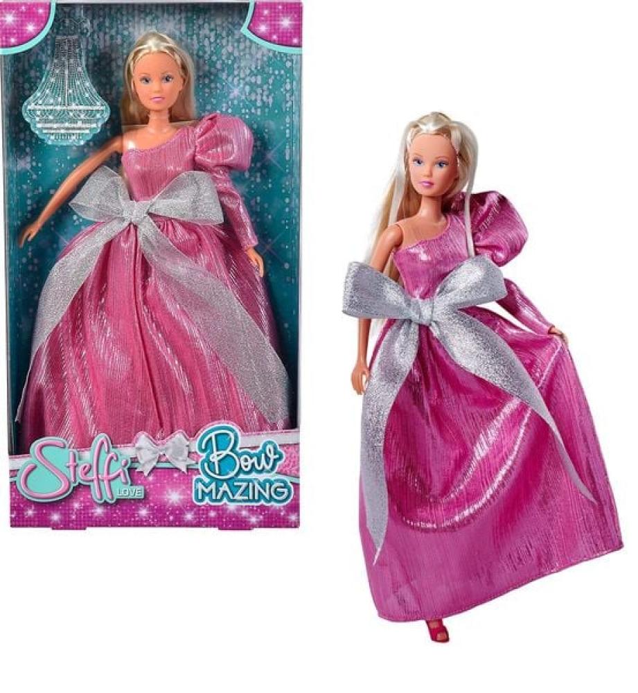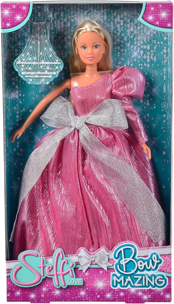 ستيفي لوف دمية أنيقة بحق. تعشق الملابس الأنيقة وتسريحات الشعر العصرية، وتعشق أختها الصغيرة إيفي، وبالطبع حبيبها كيفن. يمكن للأطفال تنسيق ملابس دميتهم وفقًا لأحدث صيحات الموضة.دمية رائعة بفستان سهرة ساحر مع فيونكة، طولها 29 سم.Steffi Love is a real fashion doll. She loves chic clothes, trendy hairstyles, her little sister Evi and of course her boyfriend Kevin. Children can style and dress their doll according to the latest fashion trends.Amazing, toy doll in a dreamy evening dress with bow elements, 29 cmAge: 3+Dimension: 30 x 18 x 5 cmWeight: 248 Grams